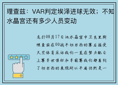 直播吧8月16日讯 水晶宫将在英超首轮对阵切尔西,主帅格拉斯纳在赛前新闻发布会中谈到了格伊、埃泽等人的情况。关于格伊和埃泽的未来“格伊过去一整周都和我们一起训练,参加了每一次训练课。埃泽也是如此。他们为周日对阵切尔西的比赛做了最充分的准备。我在足球圈待得够久了,我知道几乎每一天、每一分钟都可能发生变化。但如果你现在问我,我预计两人都会在周日首发出场。”“他们拥有正确的心态。没有人是被迫签合同的,既...